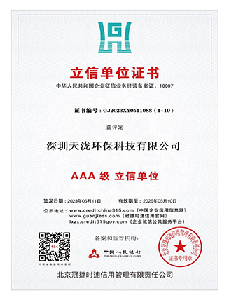 天瀧環(huán)保擁有多家專業(yè)機構認證證書包含了:CEP環(huán)境保護認證,設備第三方專業(yè)機構檢測認證,同時公司獲得了ISO9001管理體系認證,CE歐盟認證等多項權威證書。同時自主研發(fā)的產(chǎn)品多達幾十件均有專利證書,信用3A認證,太平洋保險合作伙伴,中國節(jié)能產(chǎn)品,環(huán)保設備稱號等。